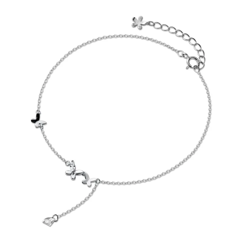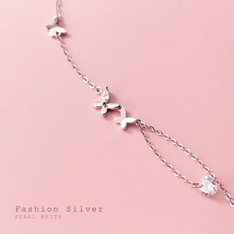 Женские браслеты на ногу MloveAcc, браслеты из серебра 925 пробы с блестящим кубическим цирконием и бабочкой, модные ювелирные украшения 925 пробы