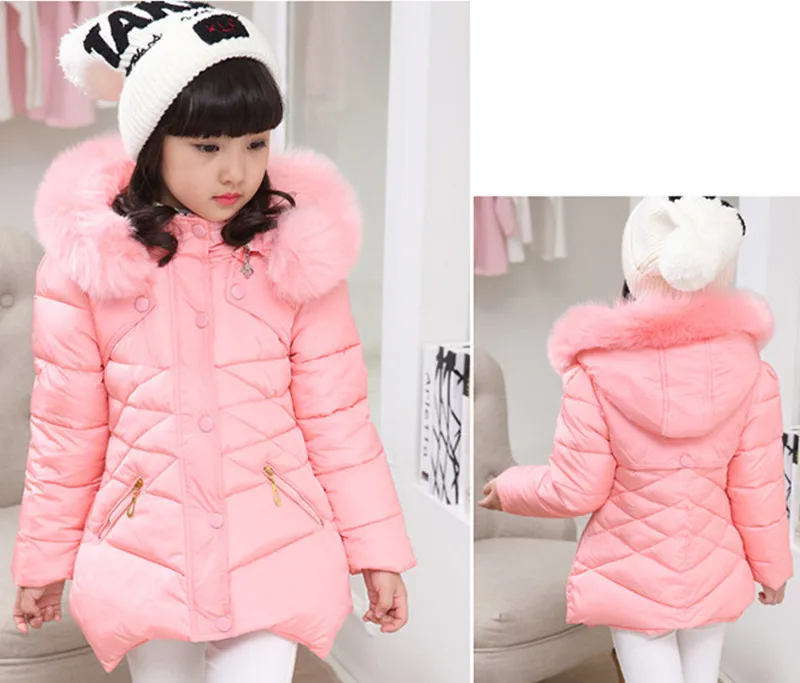 Детская хлопковая куртка для девочек, зимняя куртка для девочек, пальто, детская теплая верхняя одежда с капюшоном, пальто, одежда для девочек, детское однотонное пуховое пальто