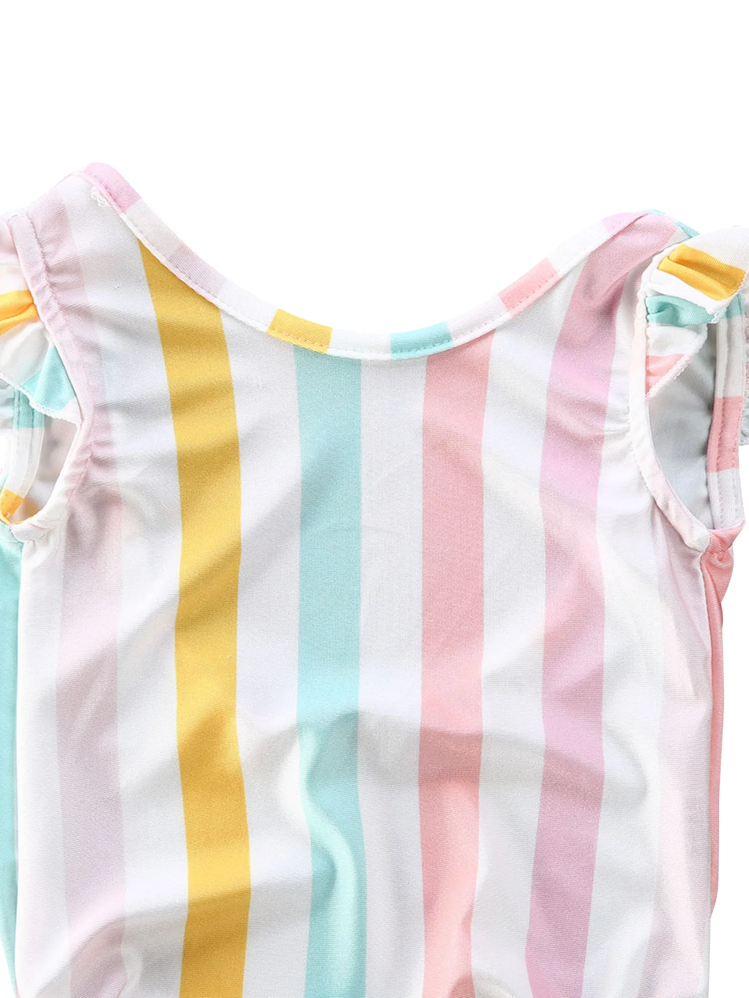 Летнее бикини для девочек 2020, цельное полосатое бикини с оборками на рукавах для маленьких девочек, пляжная одежда, летний купальник, одежда для купания