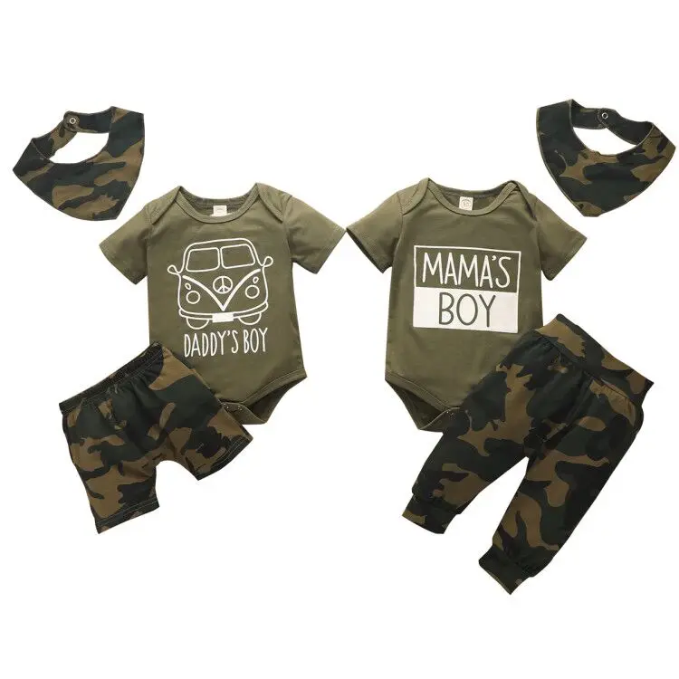 Комплекты одежды для новорожденных мальчиков комплект из 3 предметов: комбинезон с короткими рукавами и мультяшным принтом + камуфляжные шортыштаны + комбинезон
