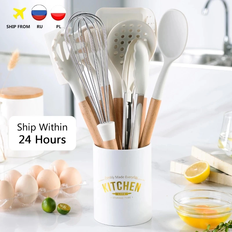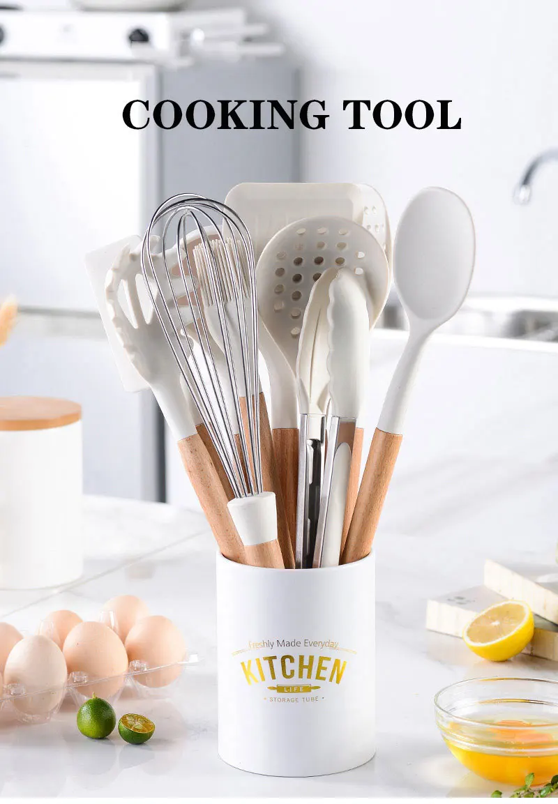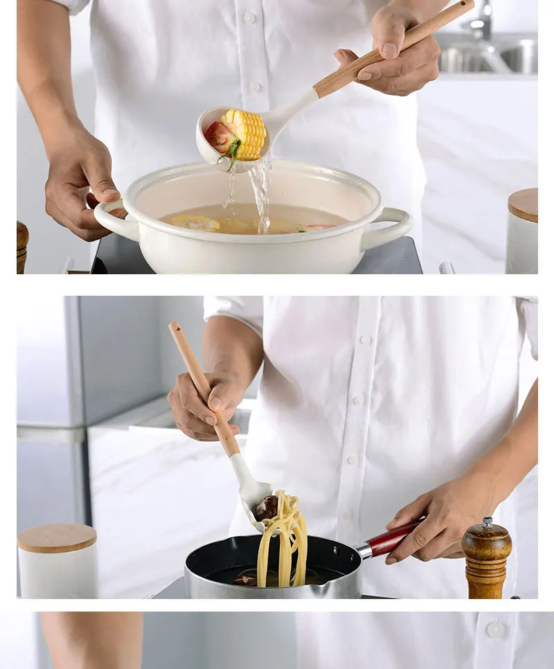 Силиконовая кухонная посуда, устойчивая к высоким температурам, антипригарная деревянная ручка, лопатка черпак, инструмент для выпечки, набор кухонных принадлежностей