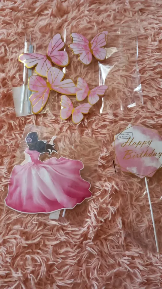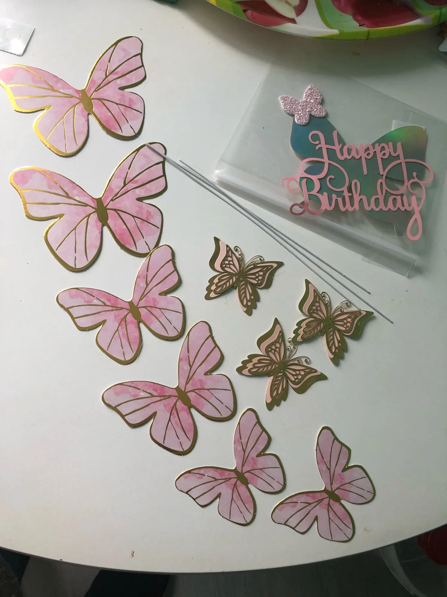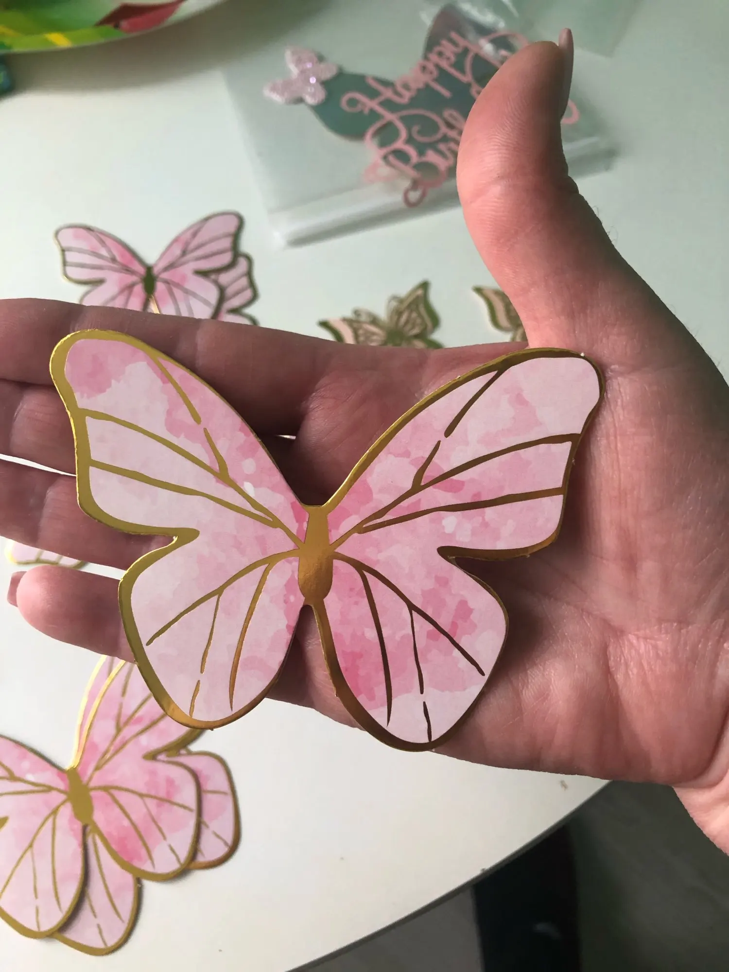 Топперы для торта, 7 шт., розовые и золотые бабочки, для дня рождения девочки, топперы для торта на день рождения