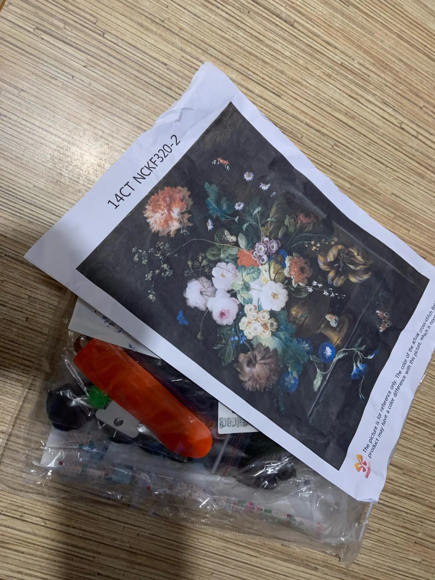 Интересные наборы.... заказала 3 , заказ разделили на 2 посылки, пришли в почтомат с разницей в3 дня... сначала даже расстроилась, думала- не доложили( проверила трек, успокоилась)... итак: огромная бумажная схема( таких прежде не видела), оверлоченная канва, ниток вроде должно хватить... плюс ножнички, иголки, напёрсток и вспарыватель...