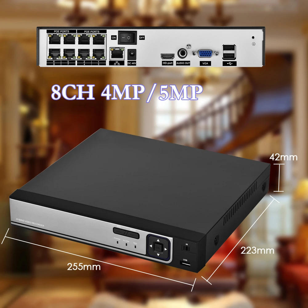 Камера видеонаблюдения H.265AI, 8 каналов, 5 Мп, POE, NVR, аудиосистема, металлическая IP камера, 2592*1944, функция распознавания лица, для дома и улицы