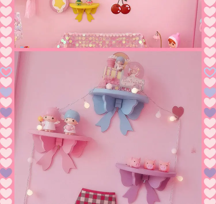 Японские милые розовые полки для спальни с бантом, настенная Косметическая кисть с деревянной ручкой полка для хранения, девичье сердце, украшение для комнаты, настенная полка