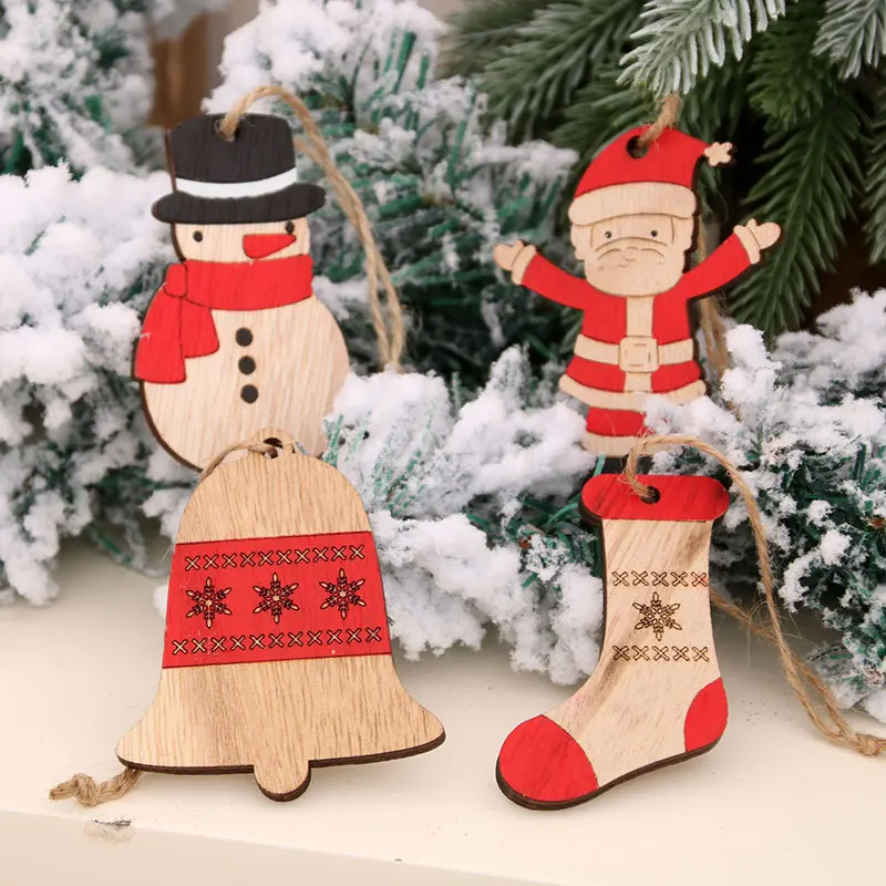 Рождественские украшения деревянные ремесла выдолбленные Рождественская елка маленькая подвеска Рождественская елка украшения для дома