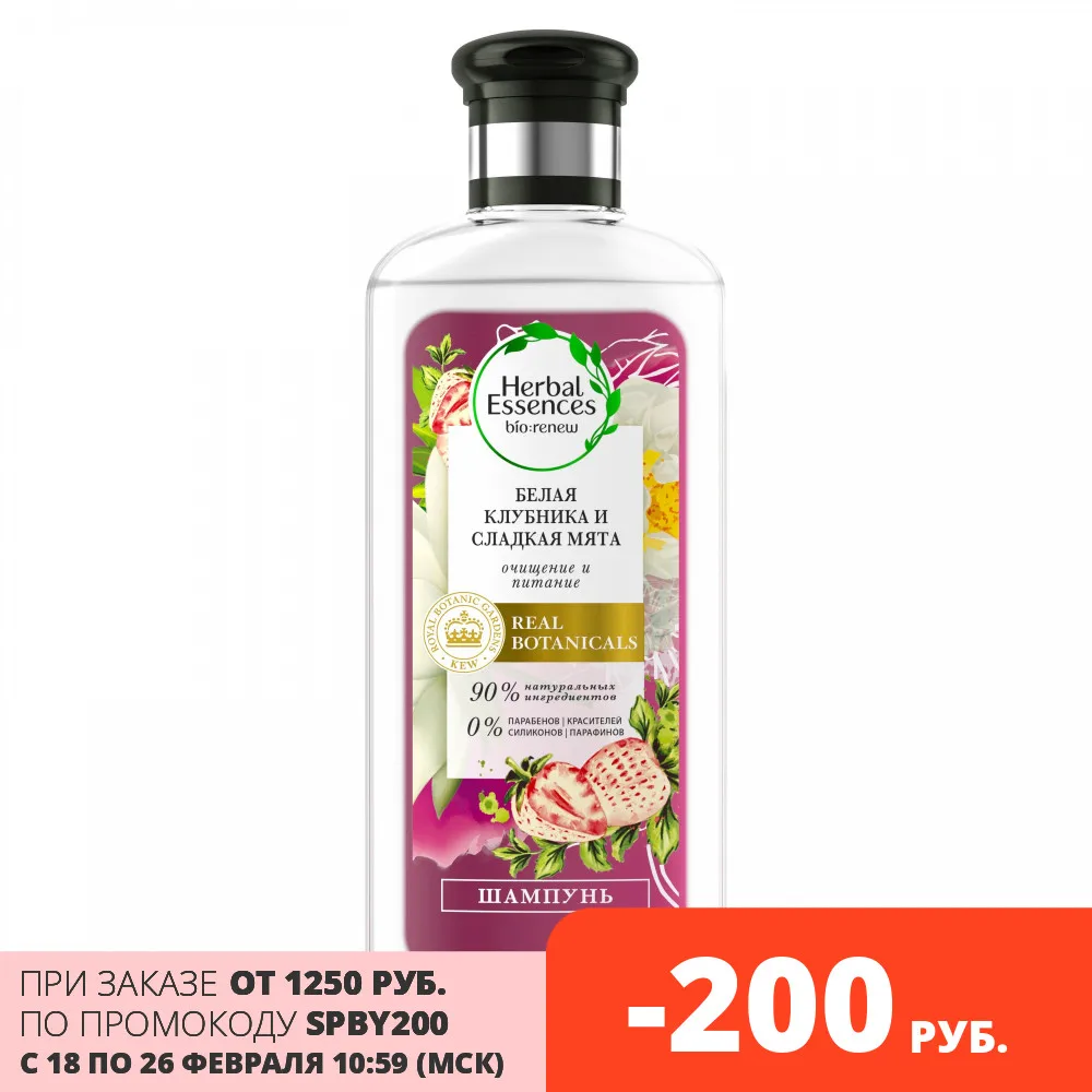 Herbal Essences верит в красоту, вдохновленную самой природой. Теперь мы сотрудничаем с Королевским Ботаническим Садом Кью — всемирно признанным авторитетом в области ботаники, — что удостоверяет качество растительных ингредиентов в наших средствах. Шампунь Herbal Essences bio:renew Белая клубника и сладкая мята на 90 % состоит из натуральных ингредиентов* и включает в себя активный антиоксидант, который способствует бережному очищению и защите ваших волос. *очищенная вода и натуральные ингредиенты, прошедшие ограниченную обработку.