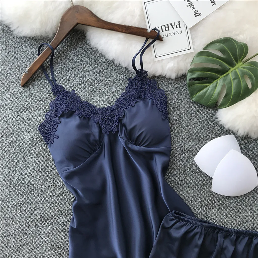 Женское сексуальное атласное нижнее белье на бретельках, кружевная ночная рубашка, комплект нижнего белья
