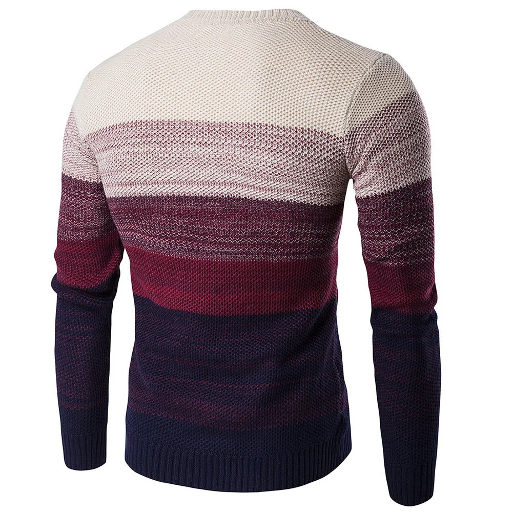 Свитер мужской шерстяной, с круглым вырезом и длинными рукавами, в стиле пэчворк