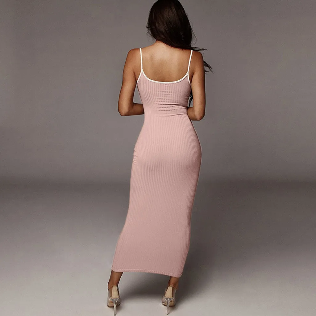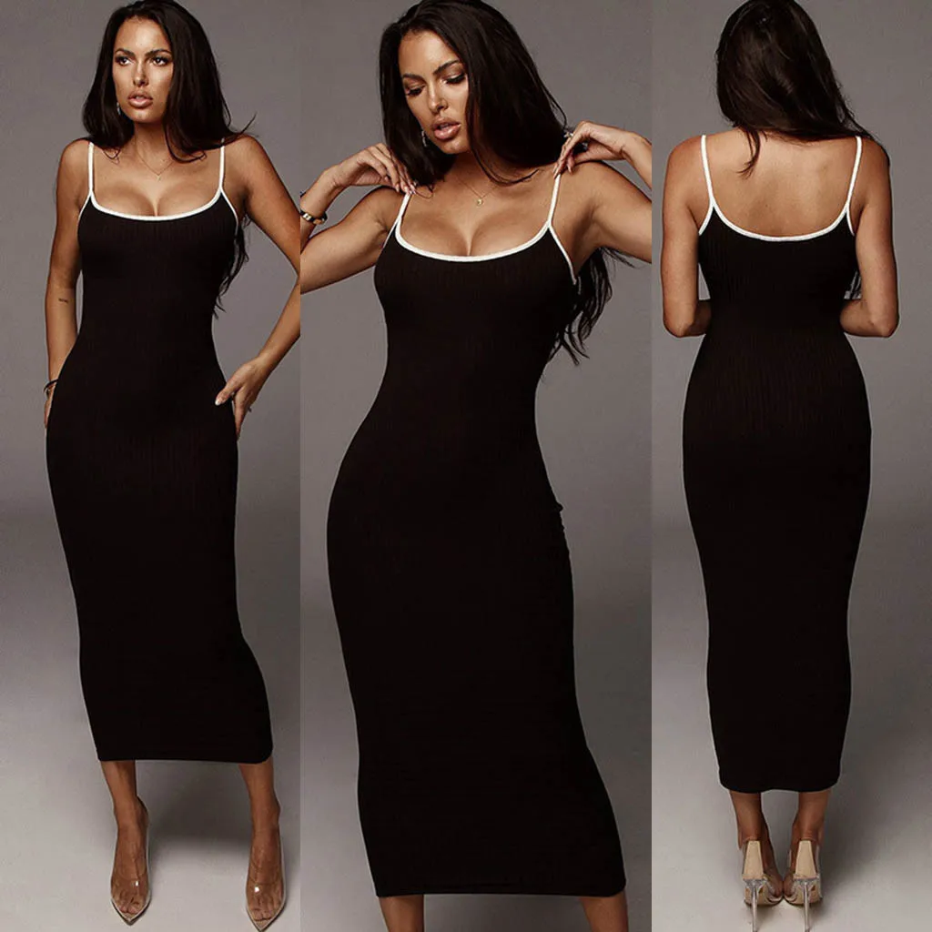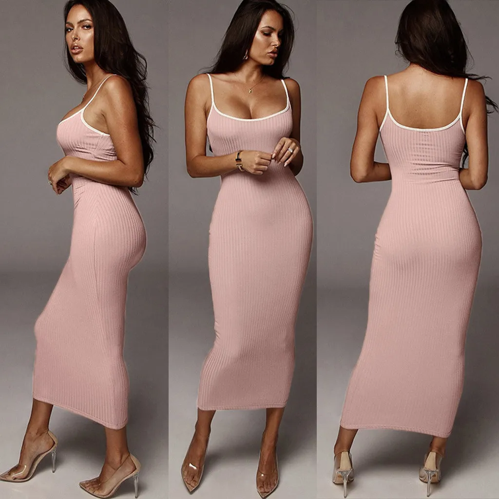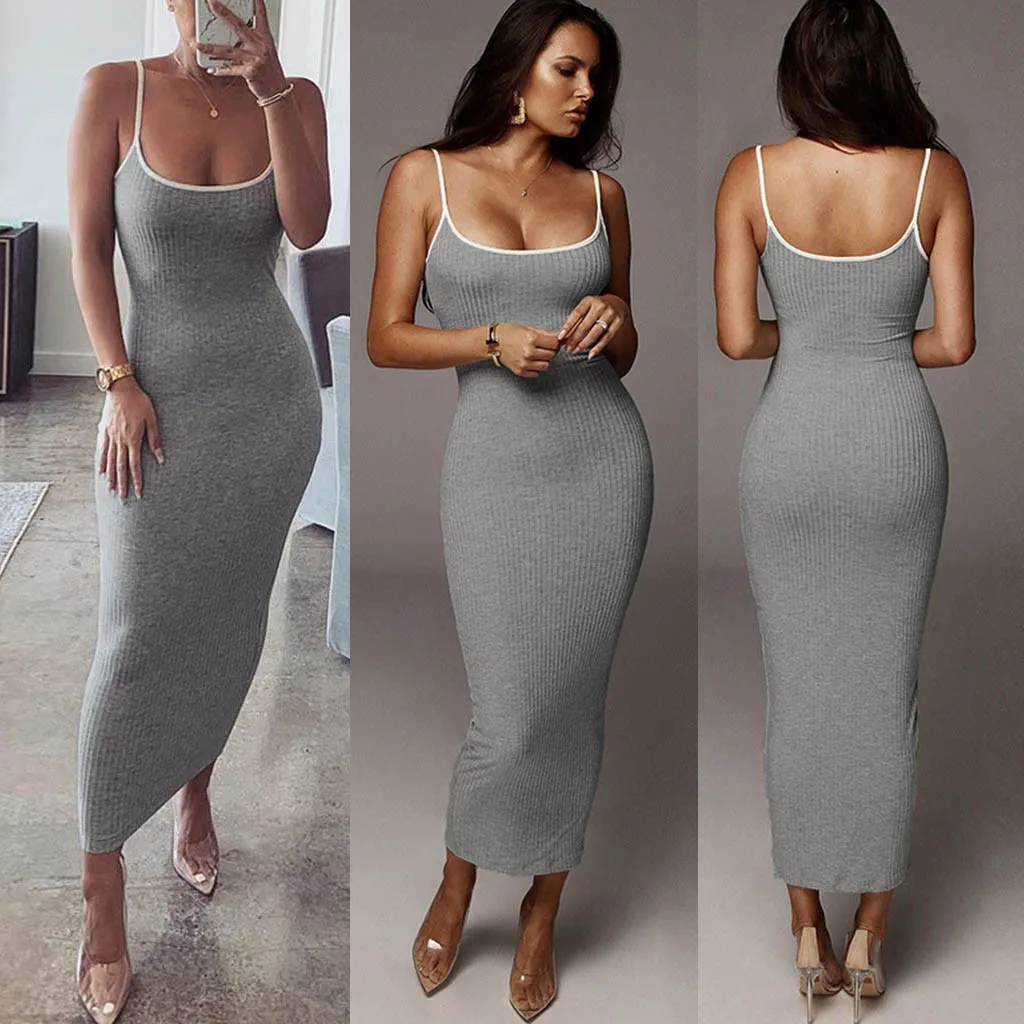 # H40 однотонные Сексуальные облегающие вечерние платья для женщин, модное обтягивающее Клубное платье без рукавов, базовое популярное платье макси 2020, облегающее женское платье
