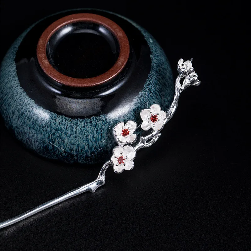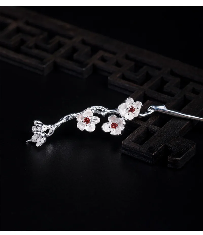 Палочка для волос из стерлингового серебра 925 пробы с цветком сливы Hanfu аксессуары для женщин ювелирные изделия старинный китайский корт винтажные Цветочные заколки для волос