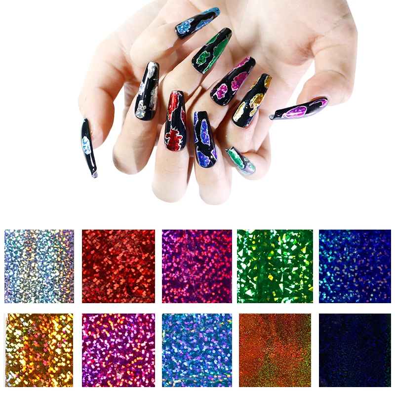 LOVCARRIE 10 рулонов/Набор стикеров для ногтей неоновая летняя переводная фольга стикер для дизайна ногтей голографический дизайн наклейки для ногтей Слайдеры для ногтей