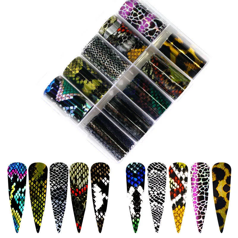 LOVCARRIE 10 рулоновНабор стикеров для ногтей s неоновая летняя переводная Фольга для дизайна ногтей стикер цветок змеи голографические дизайнерские наклейки для ногтей