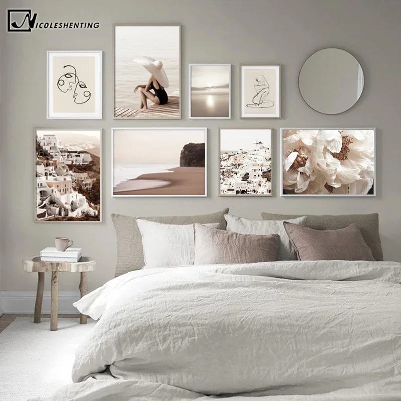 Boho Стиль картина "закат" пляж плакат скандинавский принт деревенский фон для фотосъемки морской Wall художественная фотография Гостиная украшения