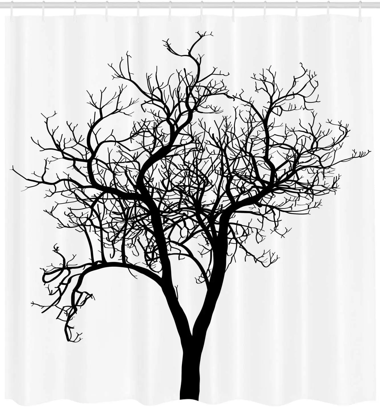 Занавеска для душа одинокое дерево, однотонная, упрощенная, с обнаженными ветками зимнего дерева, тематический Декор для ванной комнаты, набор с крючками