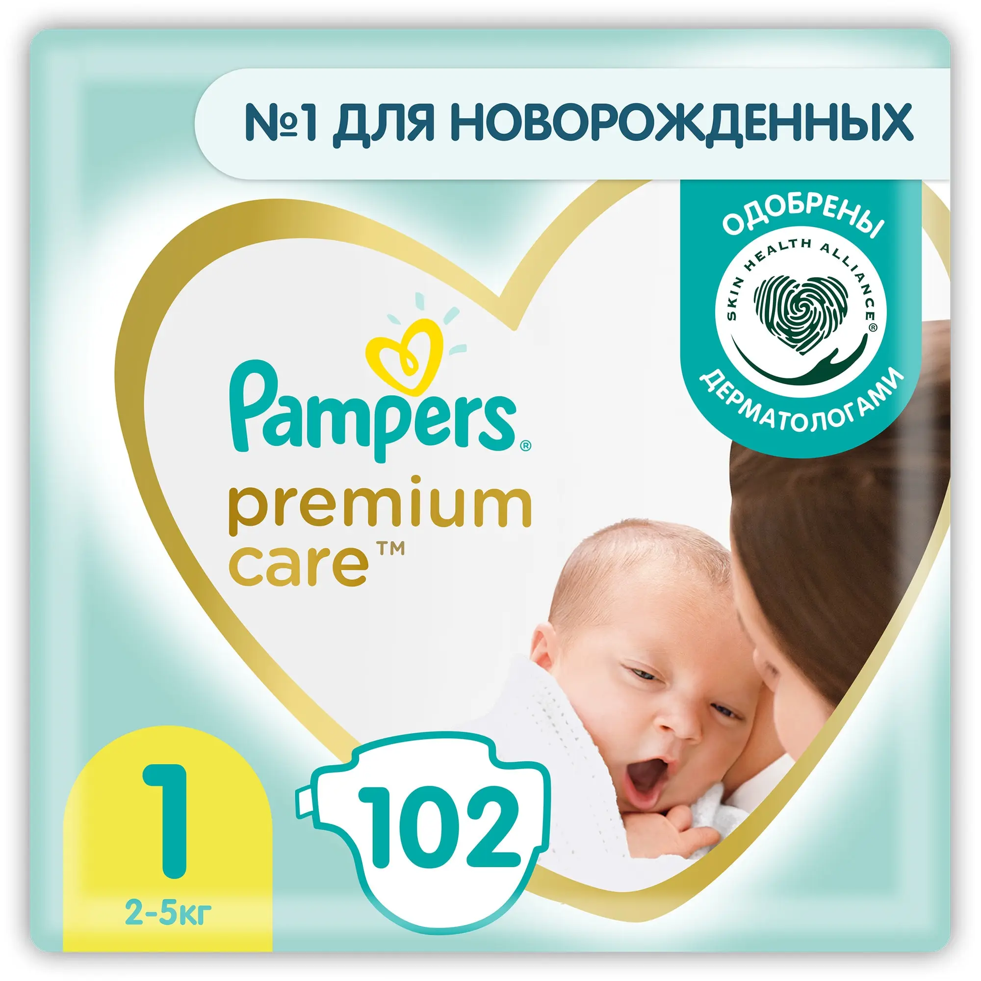 Pampers Premium Care Размер 1, 102 Подгузники, 2kg-5kg