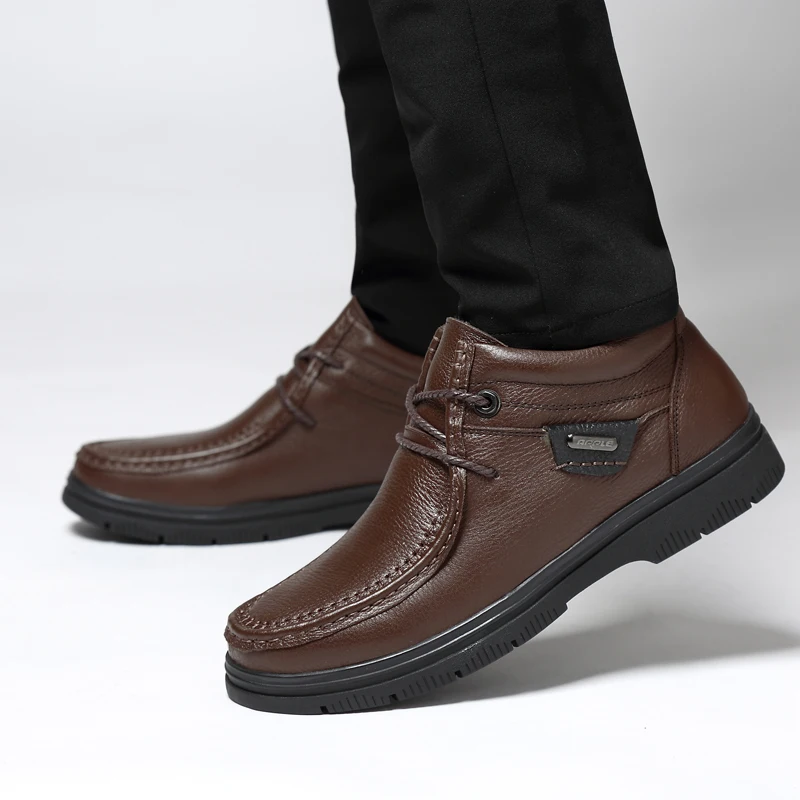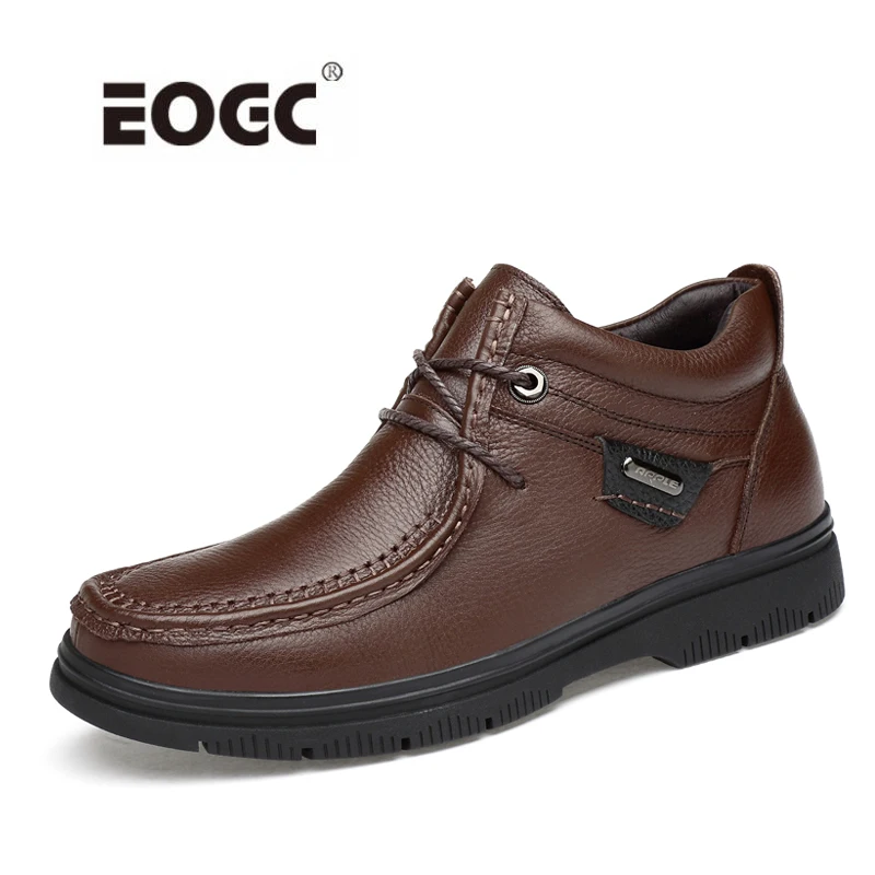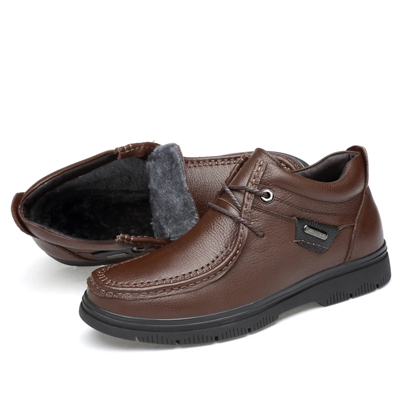 Ботинки мужские зимние из натуральной кожи, водонепроницаемые, с защитой от скольжения, размера плюс
