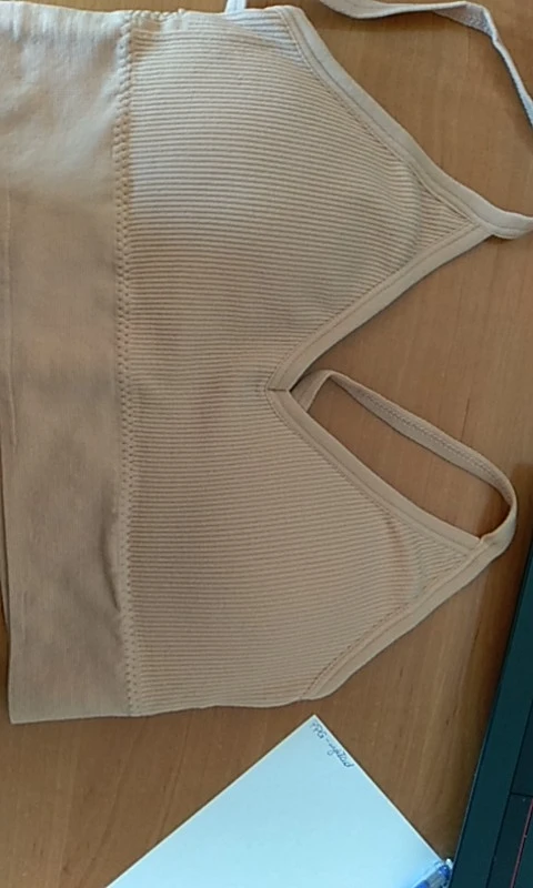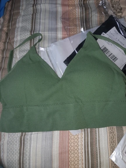Хороший топ. Мягкий. Не очень смотрятся вставки в чашечках. Но их можно вынуть и тогда все отлично . Лямки не регулируются и немного перекручиваются.