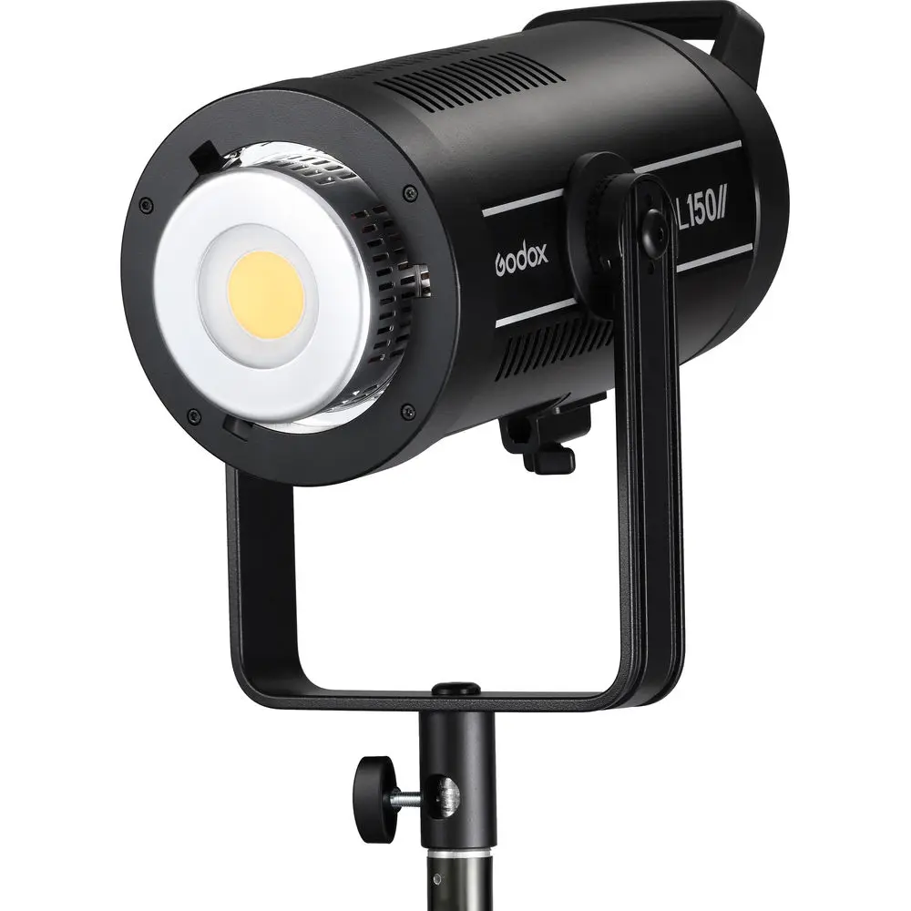 Светодиодный светильник Godox SL150W II-это Дневной светильник, сбалансированный 150 Вт Светодиодный светильник в монолитном стиле, подходящий для трансляции, кинематографии, онлайн-трансляции и других видеоприложений. Настройки затемнения колеблются от 0% до полной мощности и могут регулироваться беспроводным пультом.