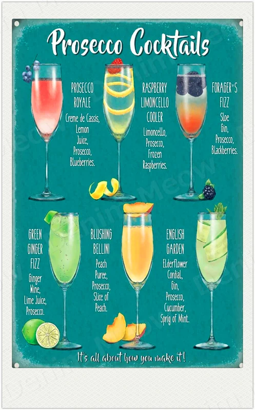 Винтажный постер Prosecco, коктейли, металлические оловянные вывески, украшение для паба, бара, Настенный декор принцессы N355