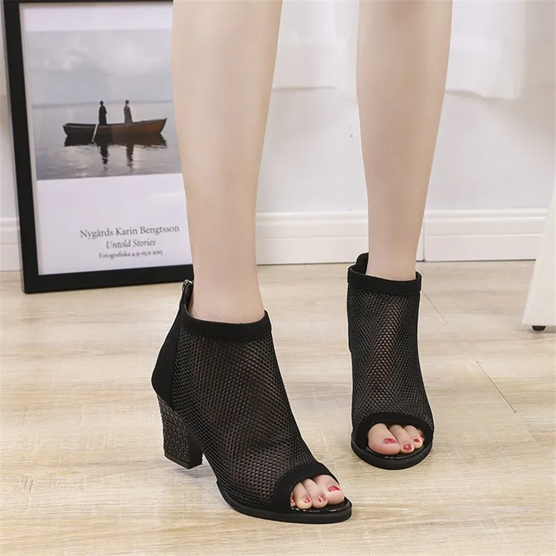 Женские ботинки замшевые ботильоны с сеткой 2019 г. летние ботинки ...