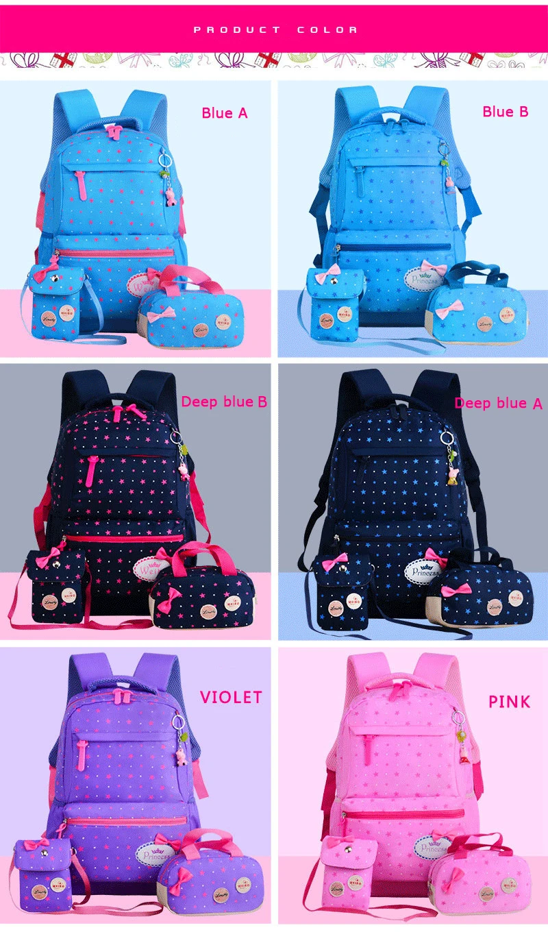 3 шт.компл., детские школьные сумки с принтом звезды для девочек, п...