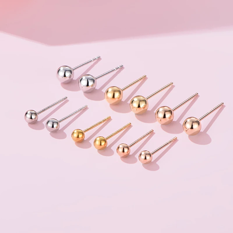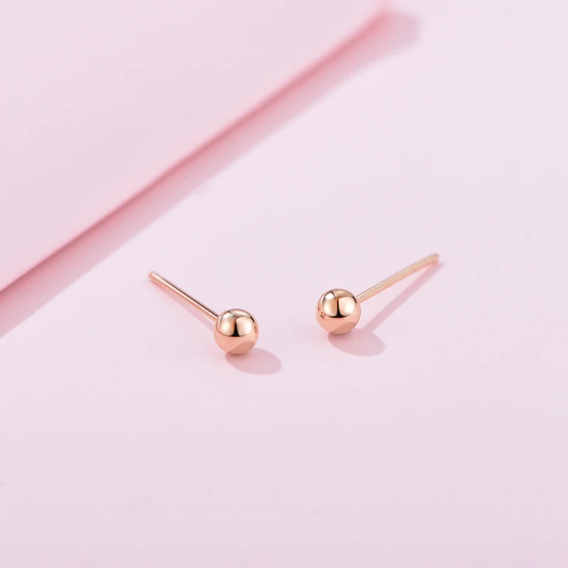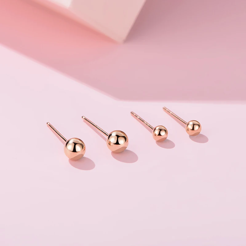 Женские серьги-гвоздики из розового золота с круглыми бусинами