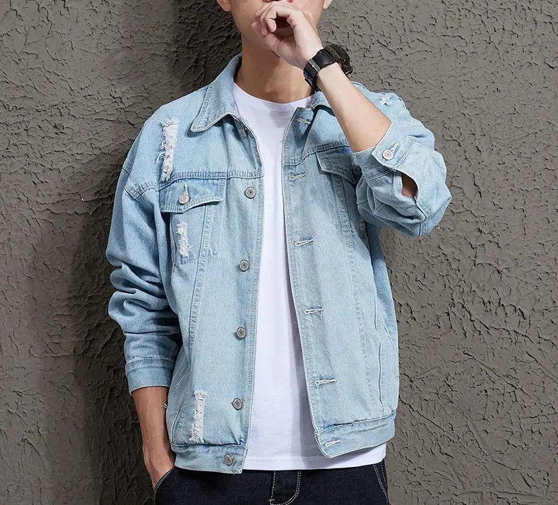 Однотонная куртка мужская одежда однобортная джинсовая куртка мужская куртка повседневная мужская одежда с отложным воротником Новое поступление Модная одежда