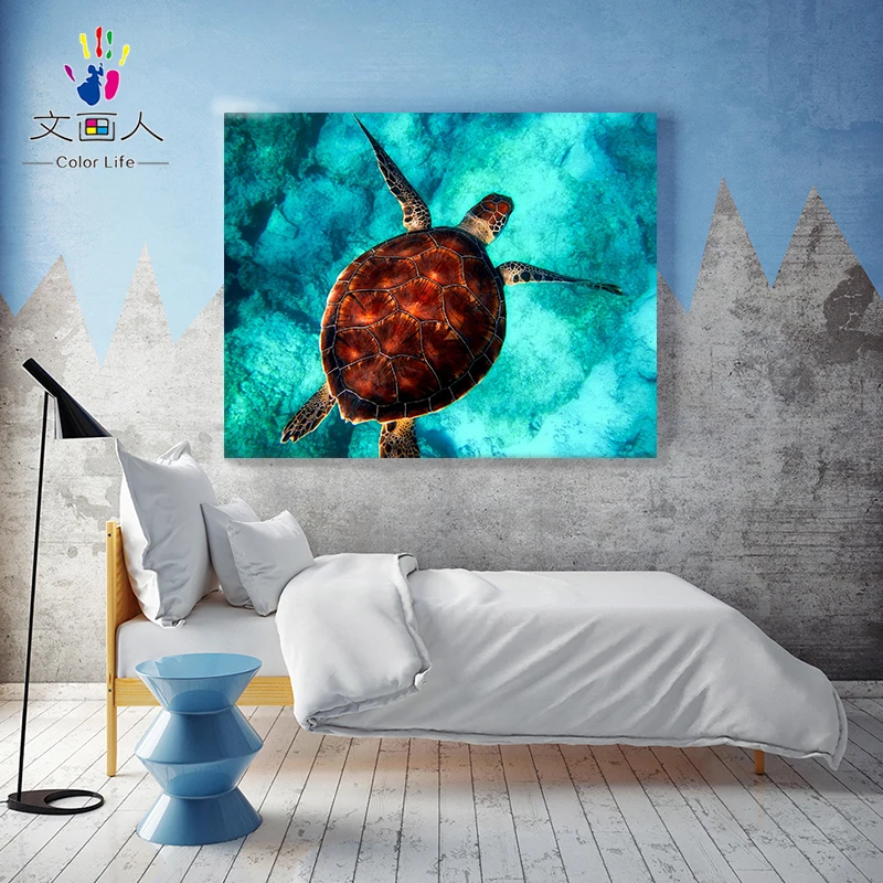 Картина по номерам, живопись, плавание, черепаха, ручная роспись, цветная картина маслом, для гостиной, спальни, декоративные картины