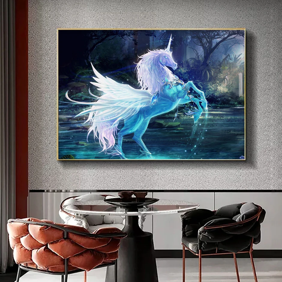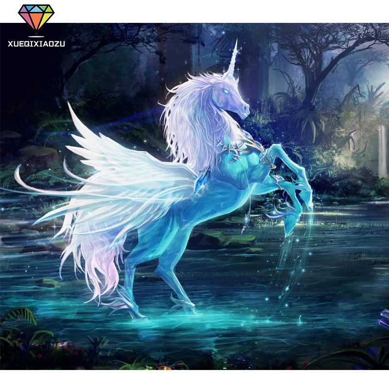 Полностью круглая алмазная живопись фантазия Лошадь Единорог мозаика аксессуары DIY стразы украшение для дома вышивка крестиком BXG51