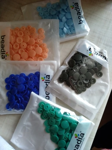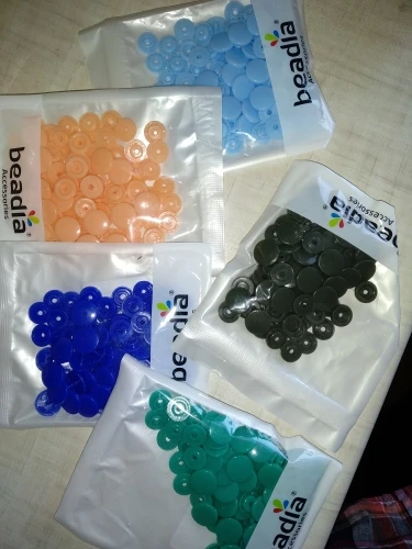 Обычные пластиковые кнопки. Зажимаются прессом.