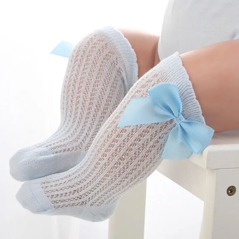 2020 летние носки для маленьких девочек, хлопковые сетчатые Дышащие носки с бантом для малышей, носки для новорожденных Нескользящие, для девочек 0-3 лет