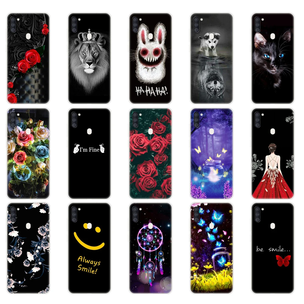 Чехол для Samsung A11 6,4 дюйма, Мягкая силиконовая задняя крышка из ТПУ для телефона Samsung Galaxy A11 SM-A115FZWNSER a115, черный чехол с мультяшным рисунком