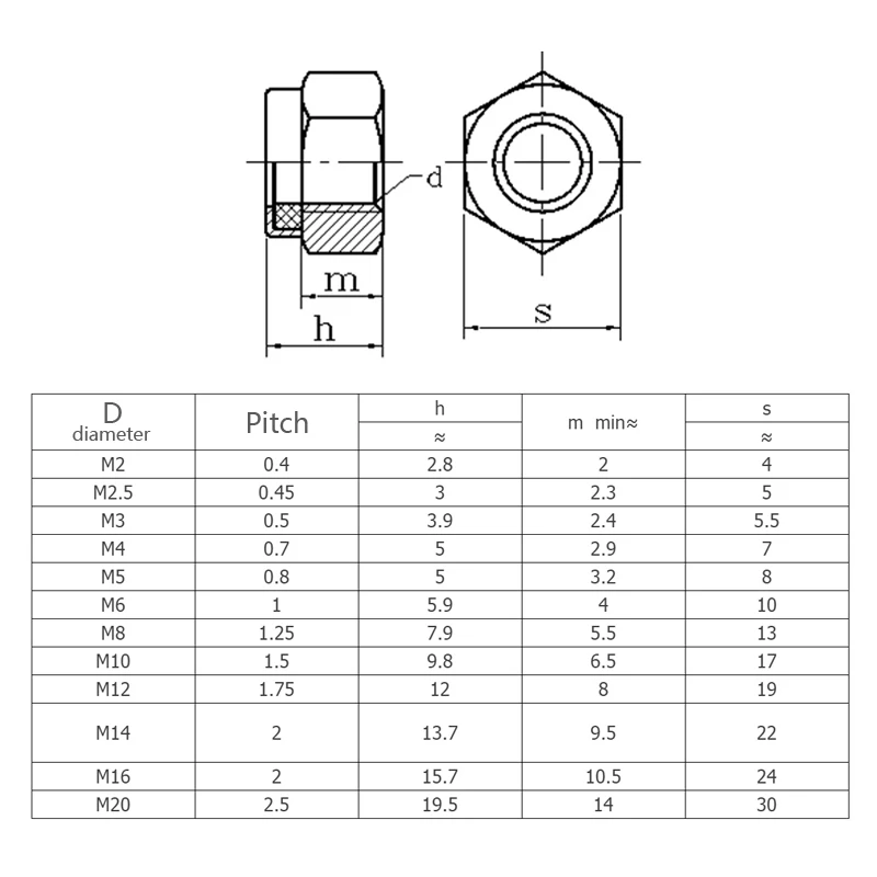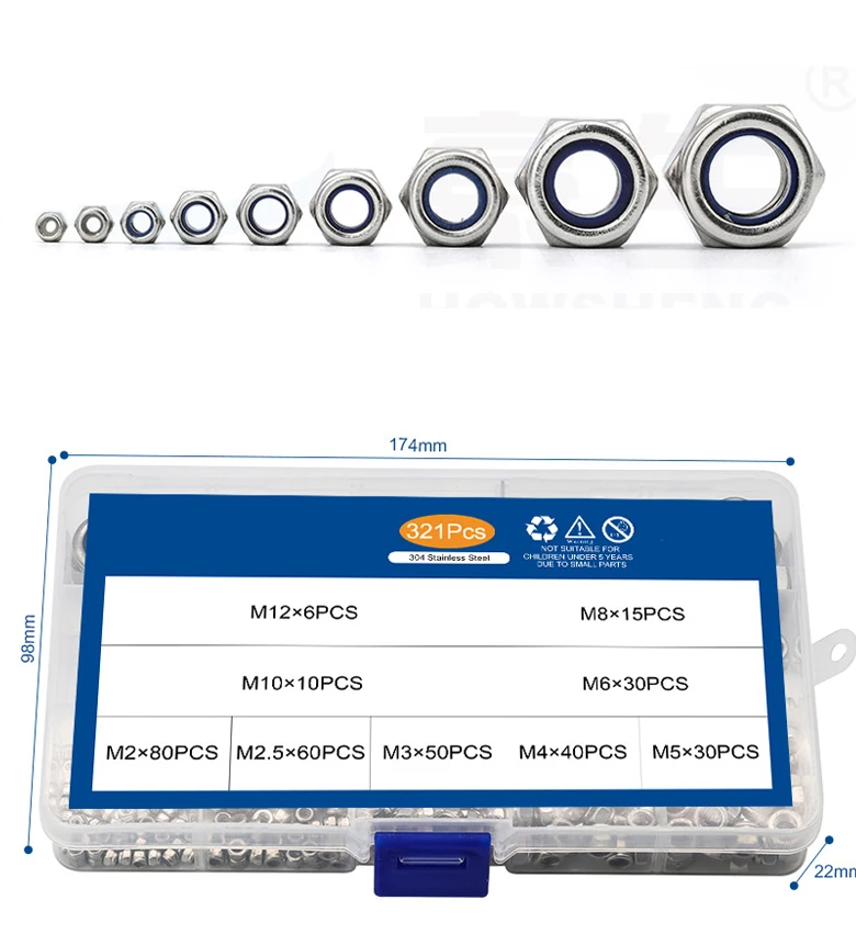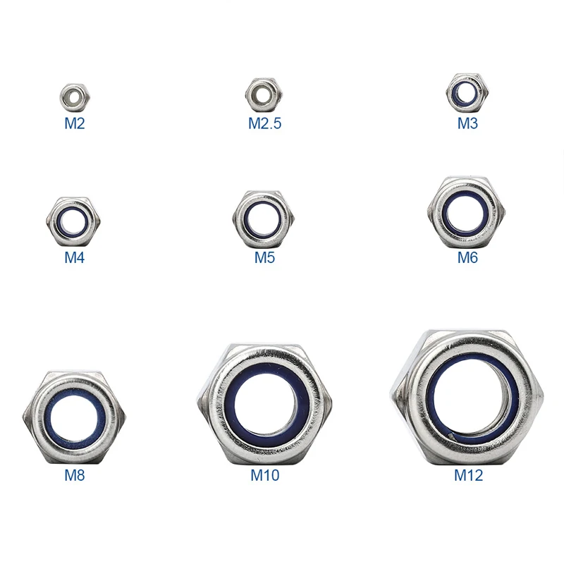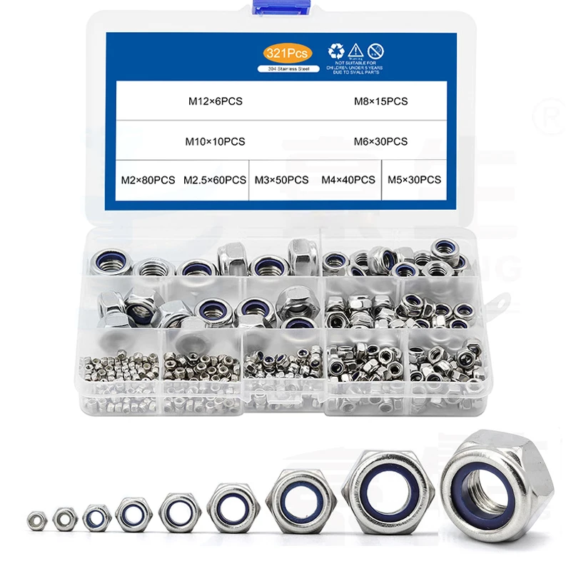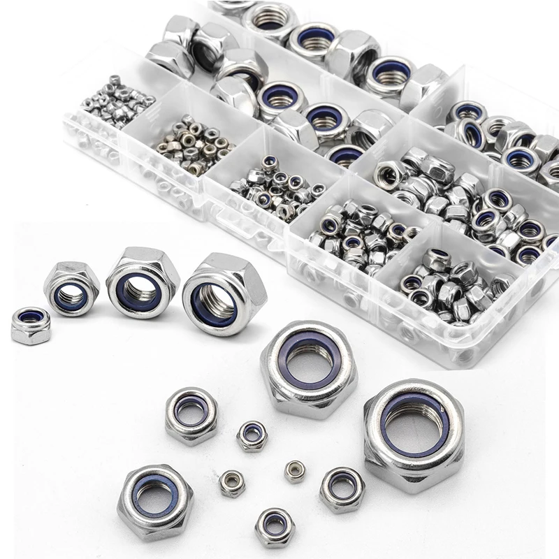 321 шт.компл. DIN985 M2 M2.5 M3 M4 M5 M6 M8 304 нержавеющая сталь, нейлон, самоблокирующиеся шестигранные гайки, Locknut, противоскользящая гайка HW020