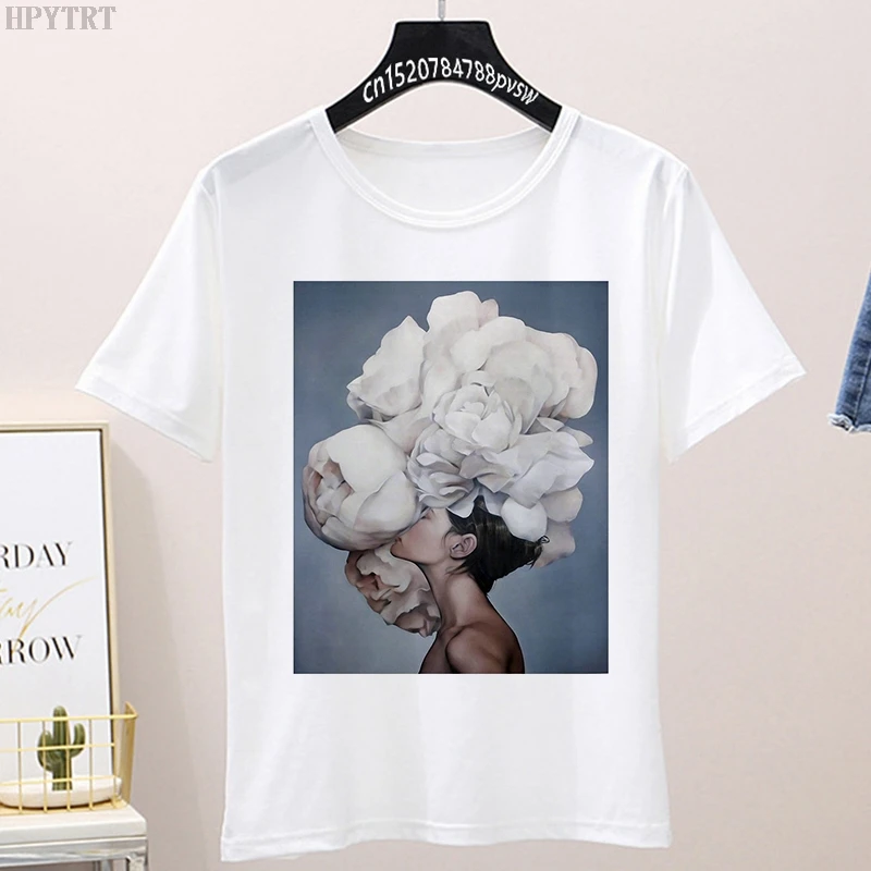 Футболка женская, с цветочным принтом, летняя, в стиле Харадзюку
