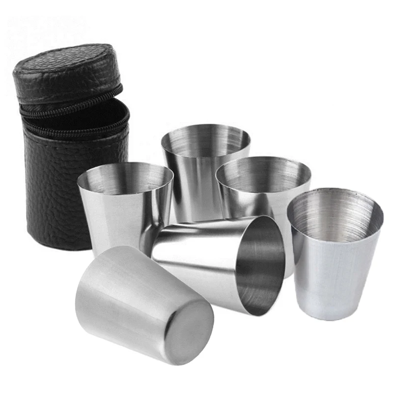 Набор мини-стаканов из нержавеющей стали, с чехлом, 30 мл, 4 шт.6 шт.