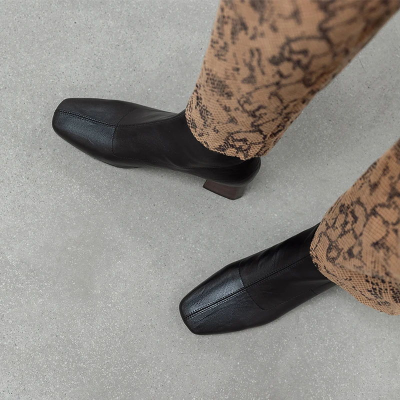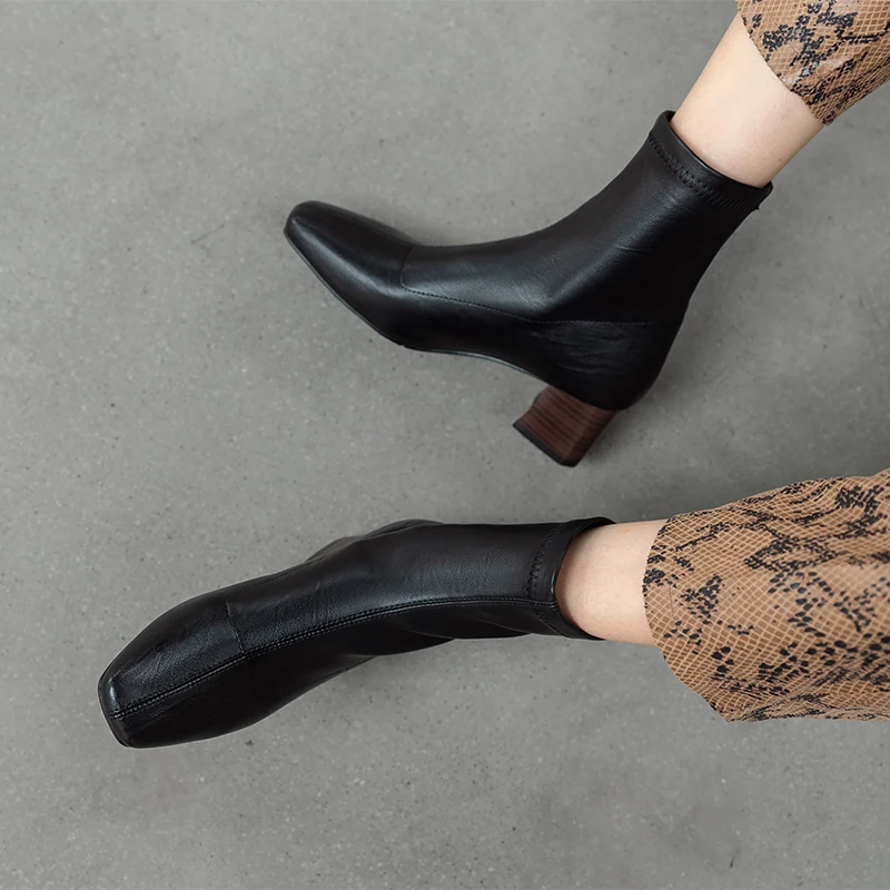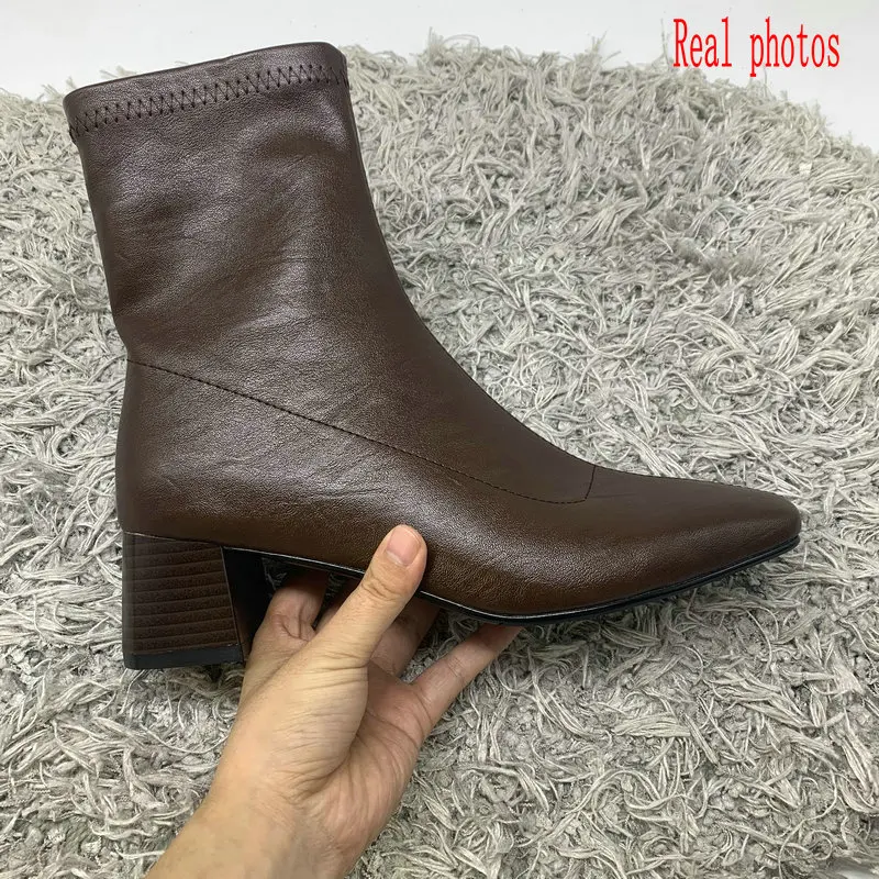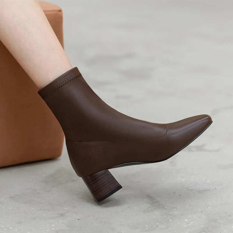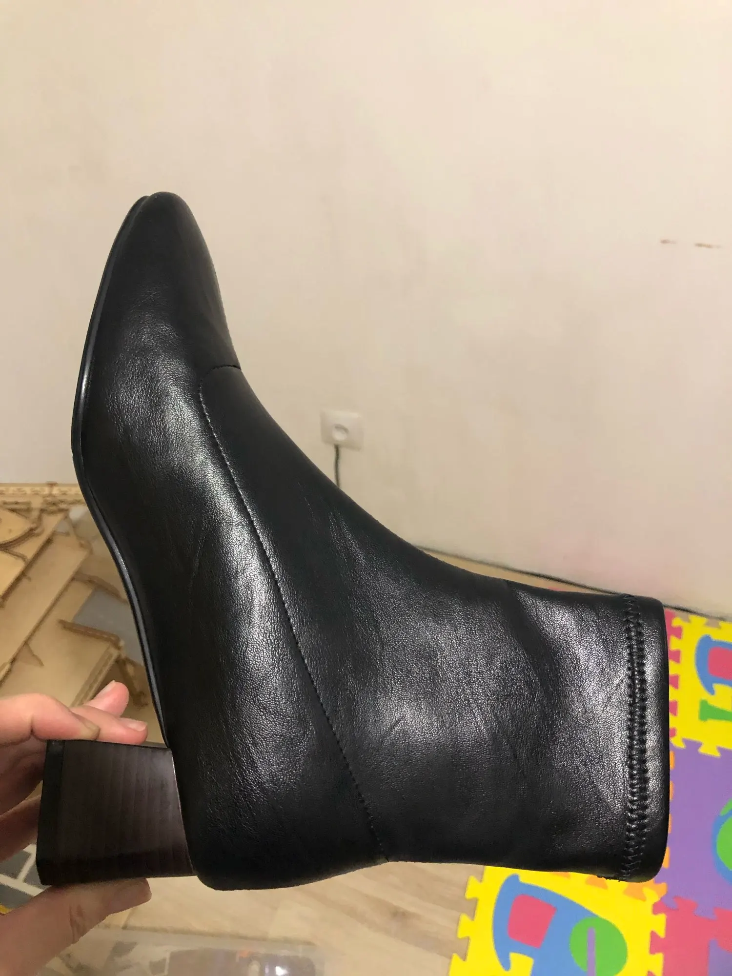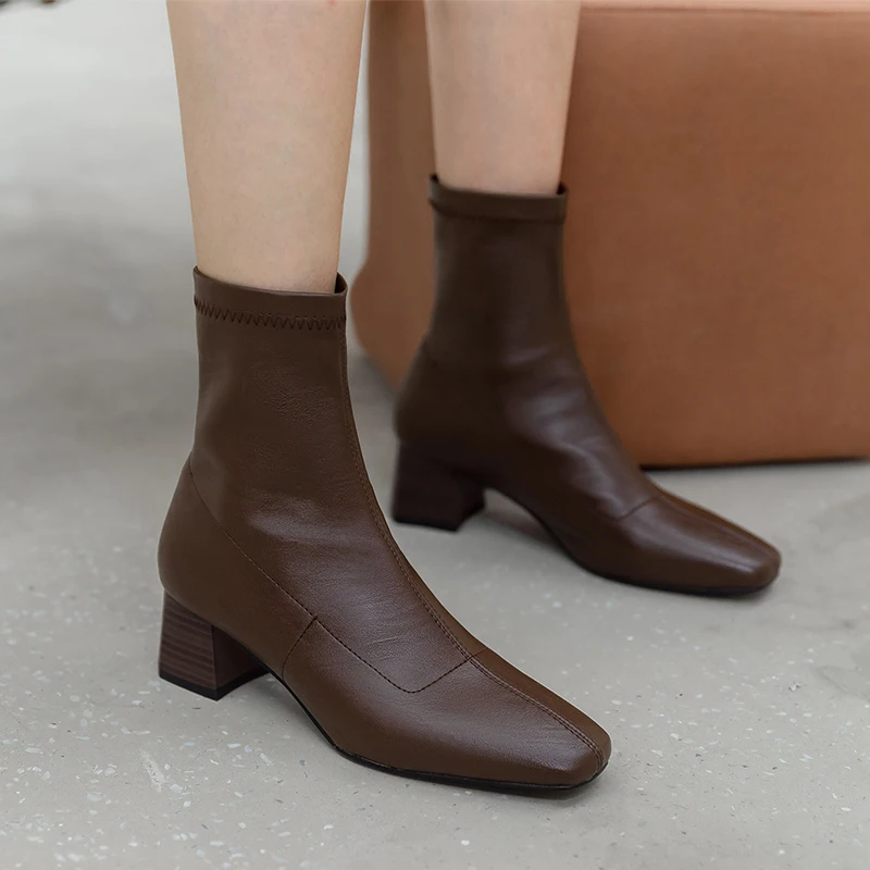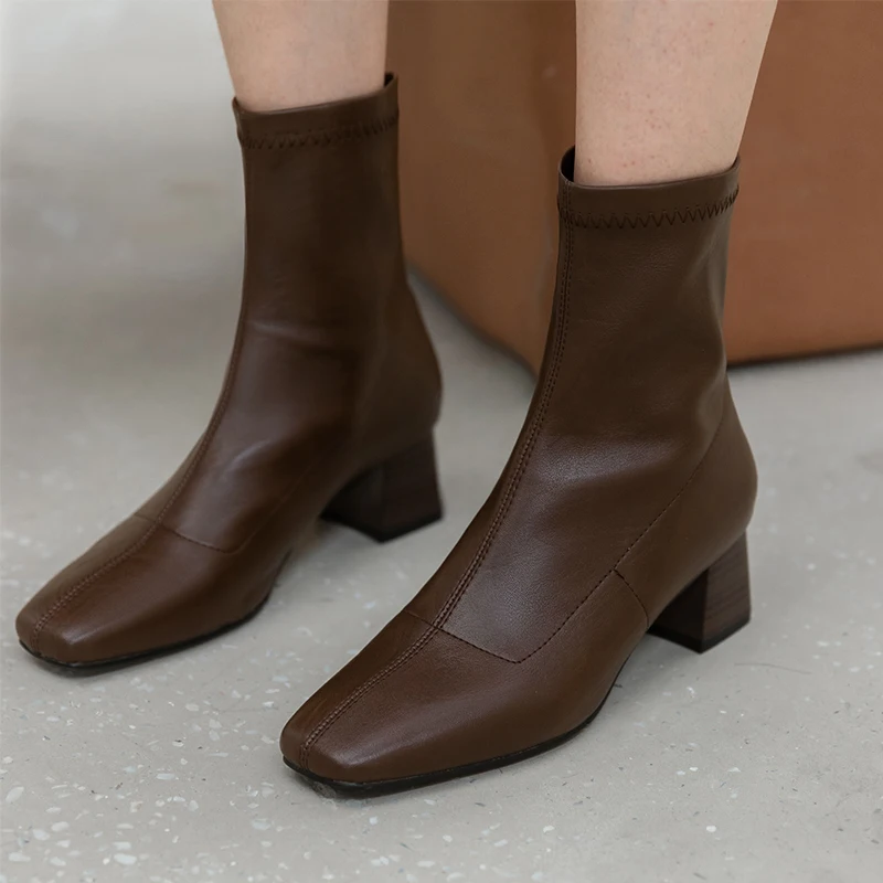 Женские короткие ботильоны из натуральной кожи, зимние теплые ботинки челси с квадратным носком, танцевальные туфли на высоком каблуке