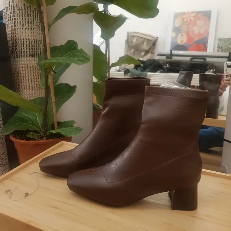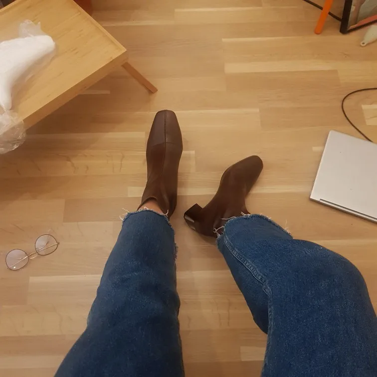 Из плюсов : Супер быстрая доставка (10 дней), красивый цвет, подошли по размеру, хорошо смотрятся. Из минусов: присутствует запах, но главное их очень неудобно надевать. Не заметила, что отсутствует молния. И конечно на худую ногу