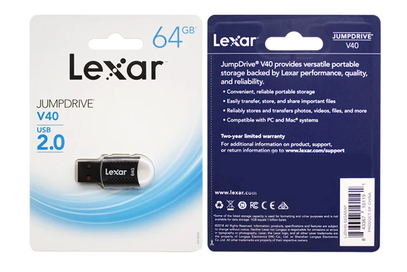 Оригинальный Lexar Jumpdrive V40, USB 2,0, карта памяти 32 ГБ, 64 Г...