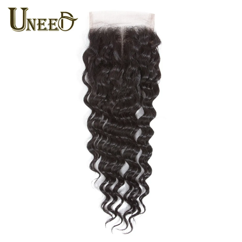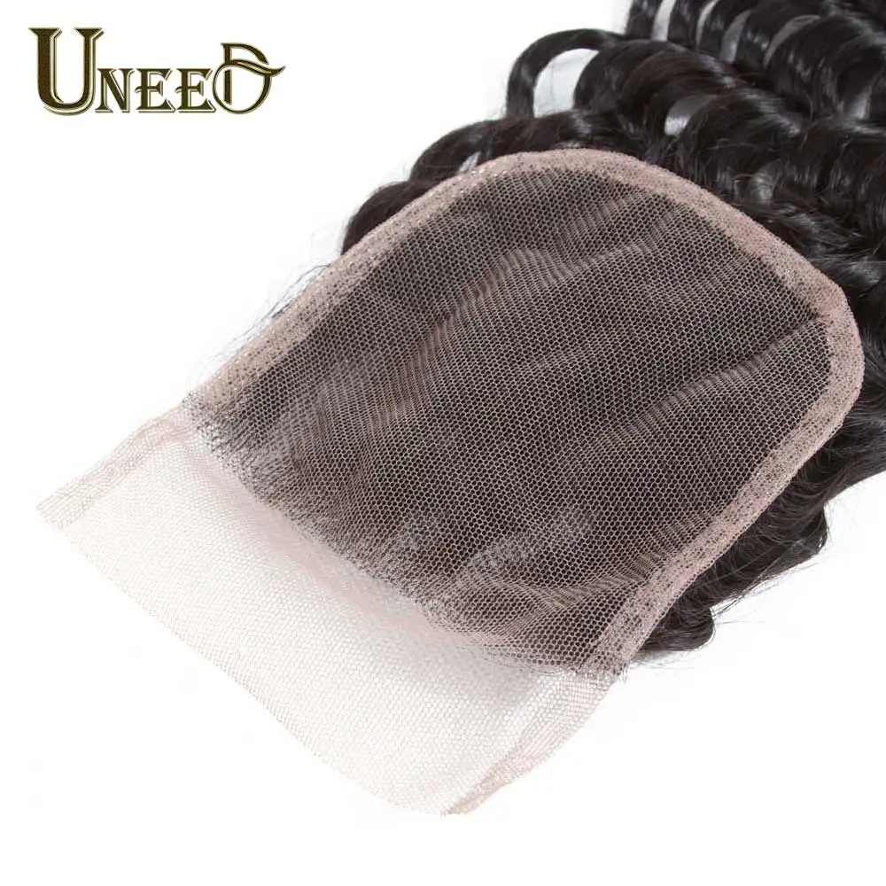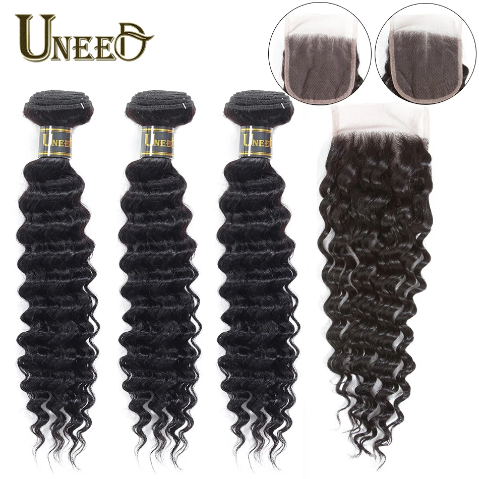 Натуральные пряди волос с закрывающей глубокой волной 1b цвет бразильские 100% человеческие волосы пучка с кружевной застежкой Remy волосы для наращивания