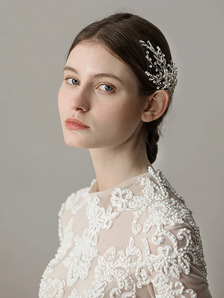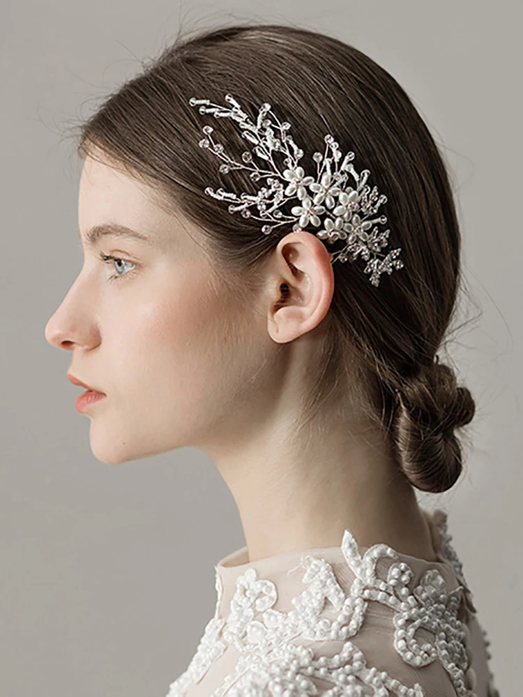 Материал: искусственный жемчуг, искусственный кристалл, стразы и серебряная проволока Эта шикарная расческа для волос подходит для многих особых случаев. Например, некоторые важные банкеты, свадьбы, сценические шоу, выпускные церемонии, вечеринки. Это может сделать вас более привлекательной.