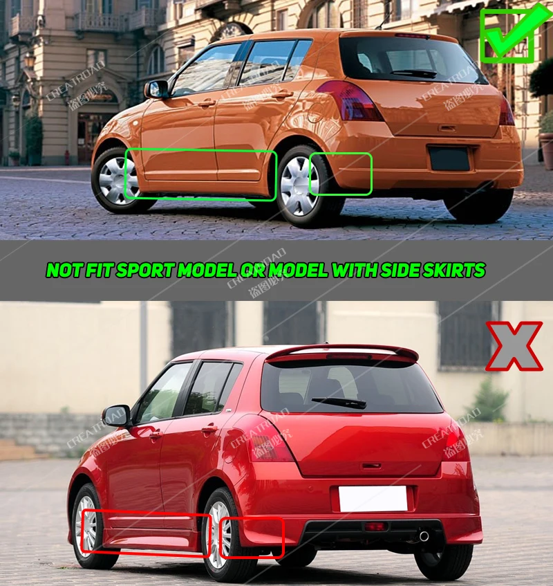 Фитинг: для Suzuki Swift II 2005-2010Не подходит для спортивной модели или модели с боковыми юбками