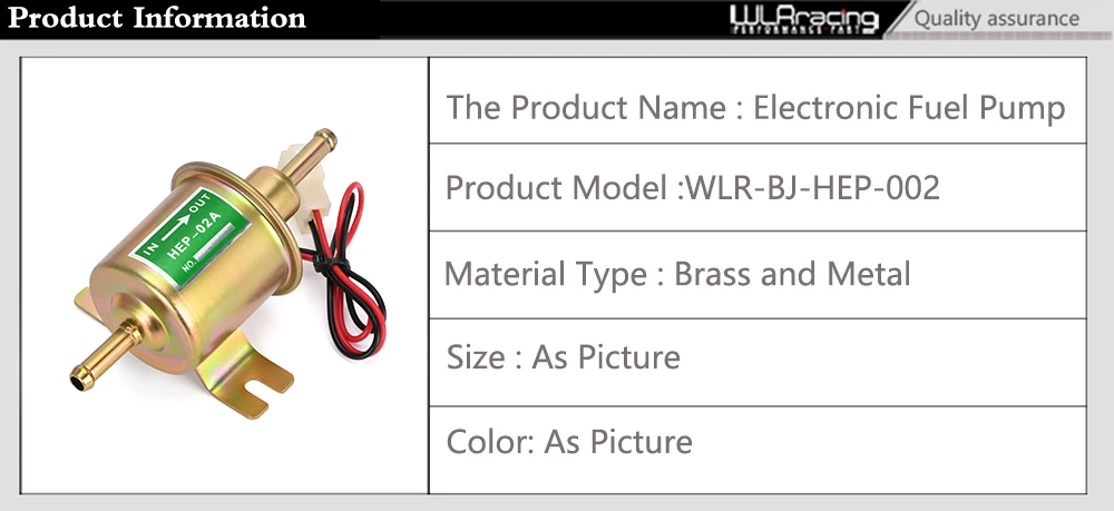 WLR RACING - Universal Diesel Petrol Gasoline 12V Electric Fuel Pump HEP-02A Low Pressure For Most Car Motorcycle ATV