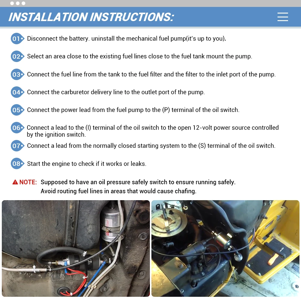 High quality and easy to install It is brand-new parts with very good quality,welcome to buy. Universal electronic fuel pump designed to replace hundreds of mechanical pump modelsDimensions& Material: