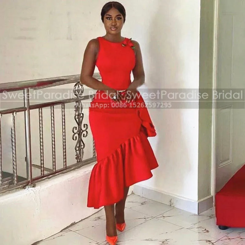 Женское платье подружки невесты, красное асимметричное платье с оборками, длиной ниже колена, платье в африканском стиле для выпускного вечера, свадьбы, вечеринки