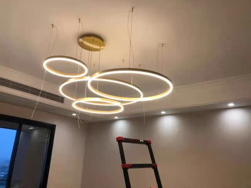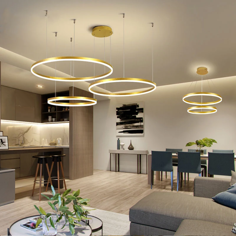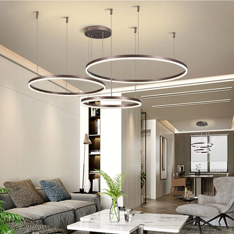 Минималистичные современные светодиодные подвесные светильники для гостиной, столовой, круглые кольца, акриловый алюминиевый корпус светодиодный ные потолочные светильники