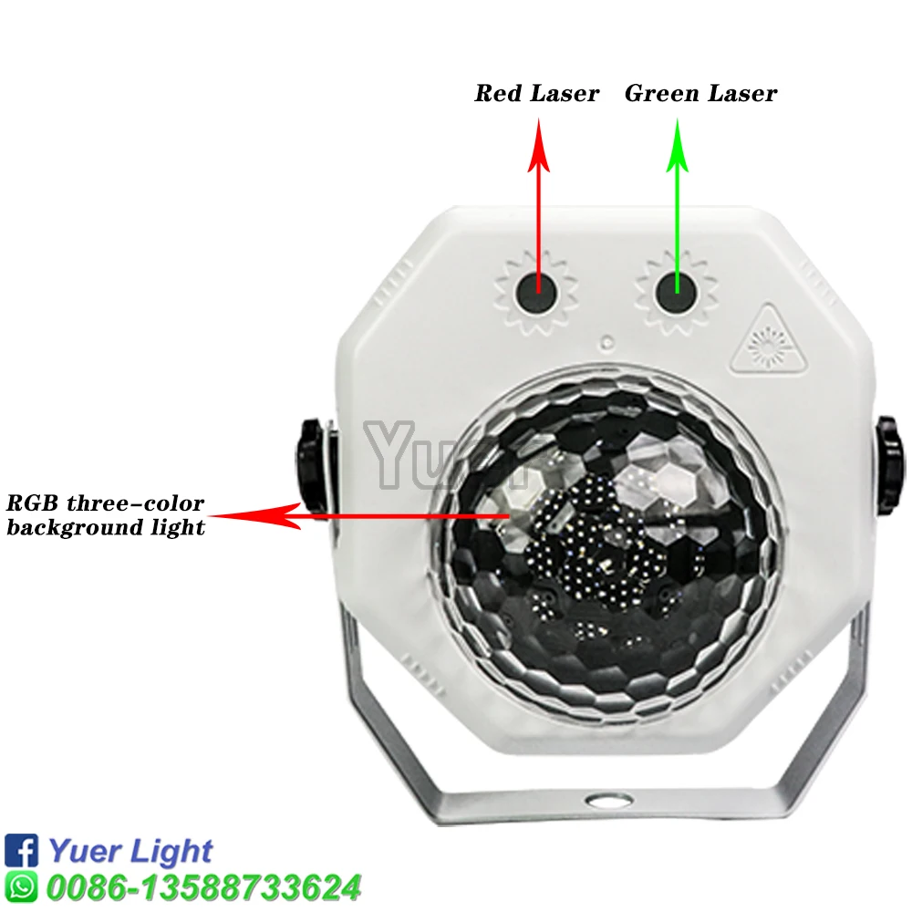 Входная мощность: AC100V ~ 240V,50Hz/60HzВыходная мощность: 5 В 2 а постоянного токаСветильник источник: 3 шт. 1 Вт цветная (RGB) Светодиодная лампа шарикЛазер: Зеленый лазер 532 нм (50 мВт) красный лазер 650нм (200 МВт)Материал шасси: пластикСветящиеся цвета: RGB + красный, зеленый лазерПодключение к питанию: адаптер питанияФункция: автоматический эффект, стробоскопический эффект, Звуковое управление, пульт ДУСистема охлаждения: Бесшумная система охлаждения вентилятораРабочая среда: в помещенииРежим упаковки: Воздушная коробка или коробкаРазмер: 15.5x13x21.5cmВес: 0,55 кгРазмер коробки: 69х33х46смВес брутто: 0,7 кг