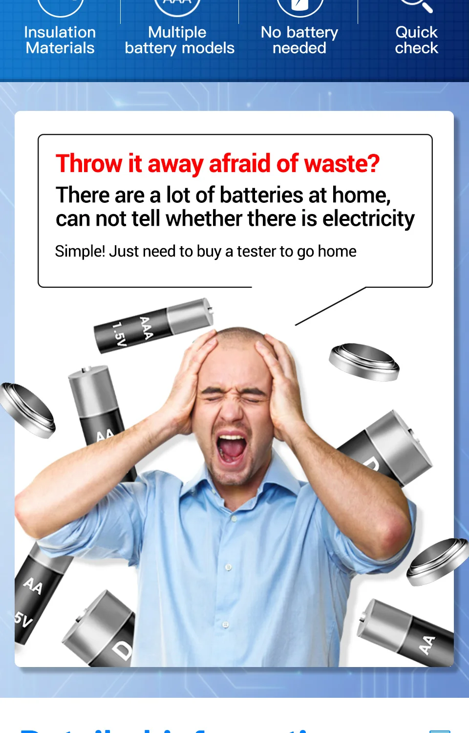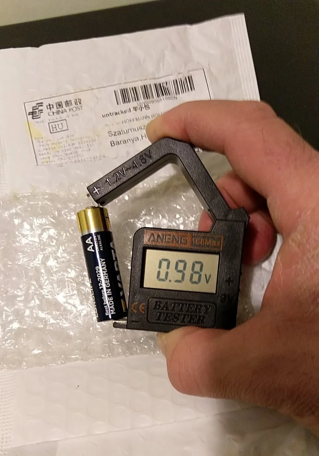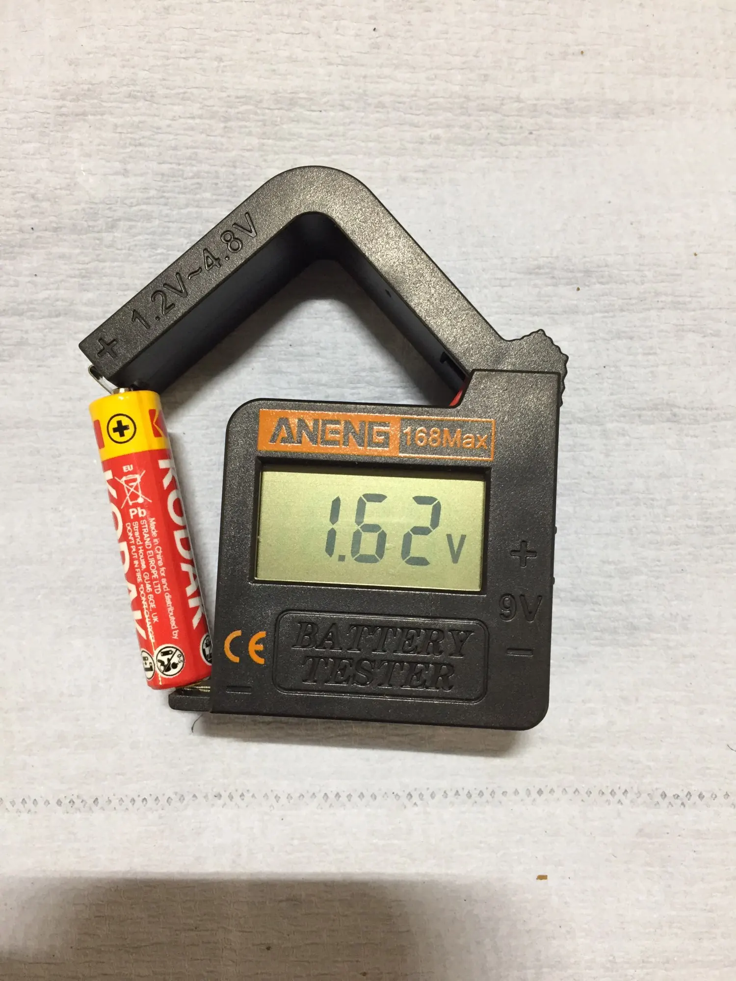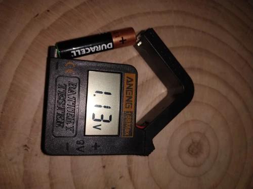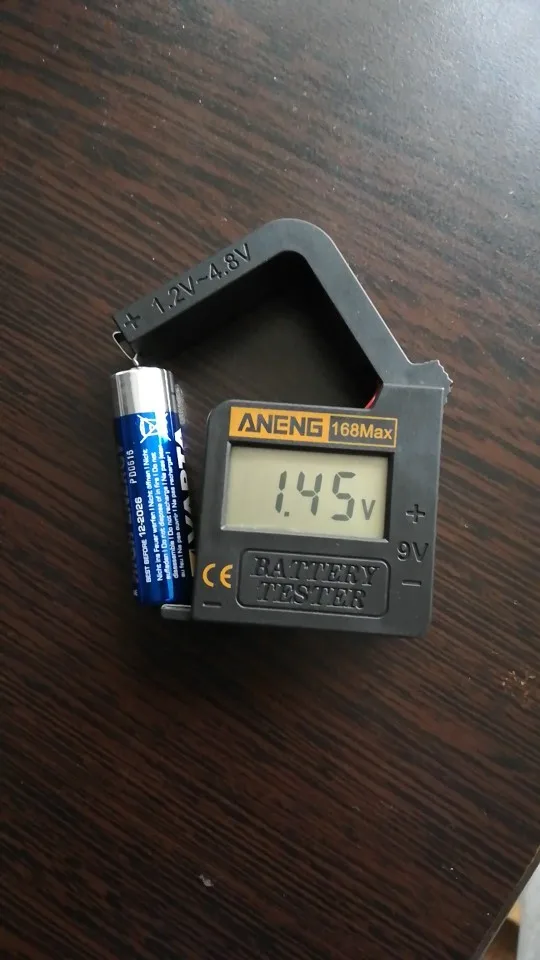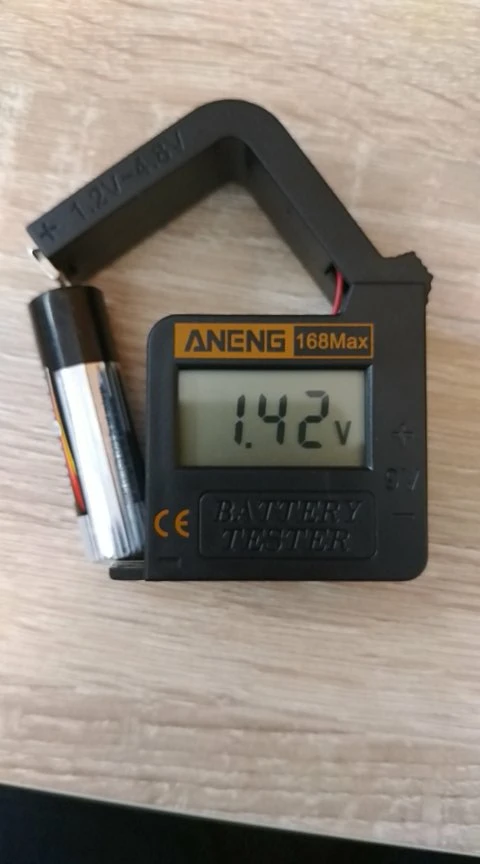 Товар прибыл исправным. Компактный. Напряжение показывает только от 1.18V. То есть определить, до конца ли убита батарейка невозможно. Как недостаток: одной рукой раскрыть рычажок невозможно, так как тестер просто выпрыгивает из пальцев. Наклеил снизу кусок наждачки, теперь не скользит. Для бережливых домохозяек рекомендую. В целом, прибор устроил.