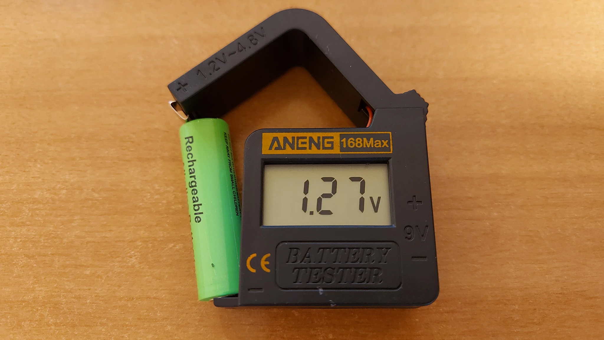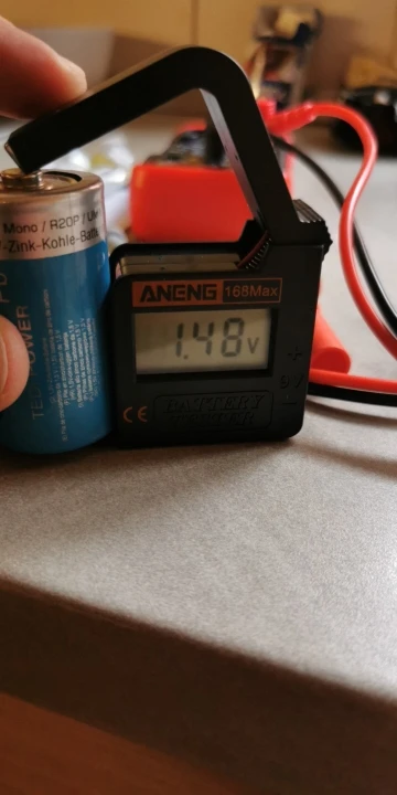 Это бесполезно, получая питание от аккумулятора, который он измеряет. 1,4 V результаты в 1,3 V. Не работает, если аккумулятор ниже 1,2 В, что делает его бесполезным с перезаряжаемыми батареями, которые 1,2 В при полной зарядке. Нет возможности измерить аккумуляторы R14 или больше.