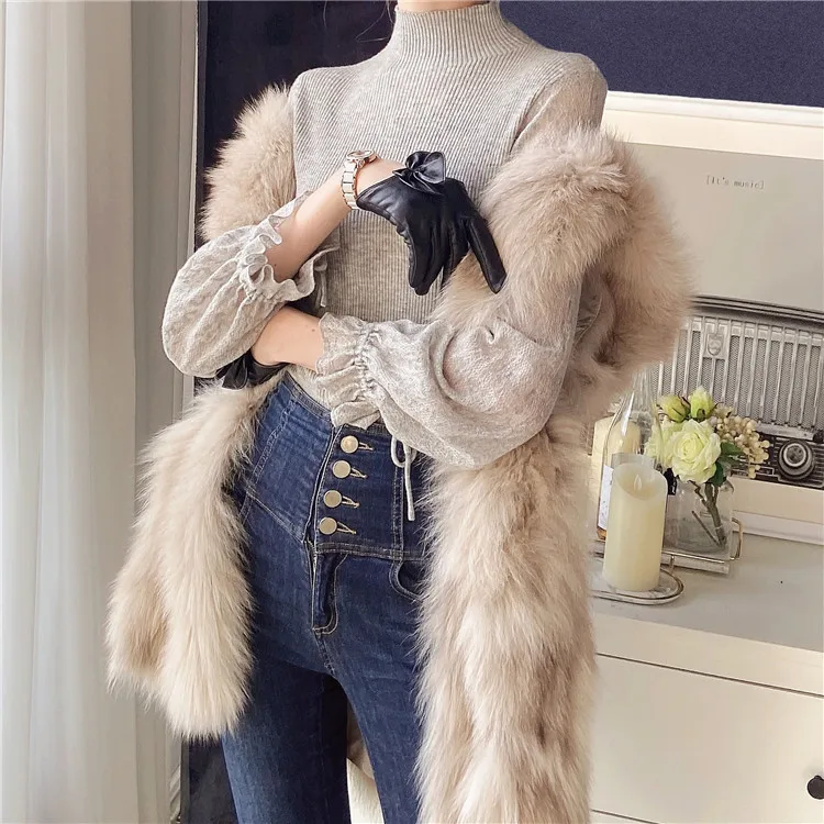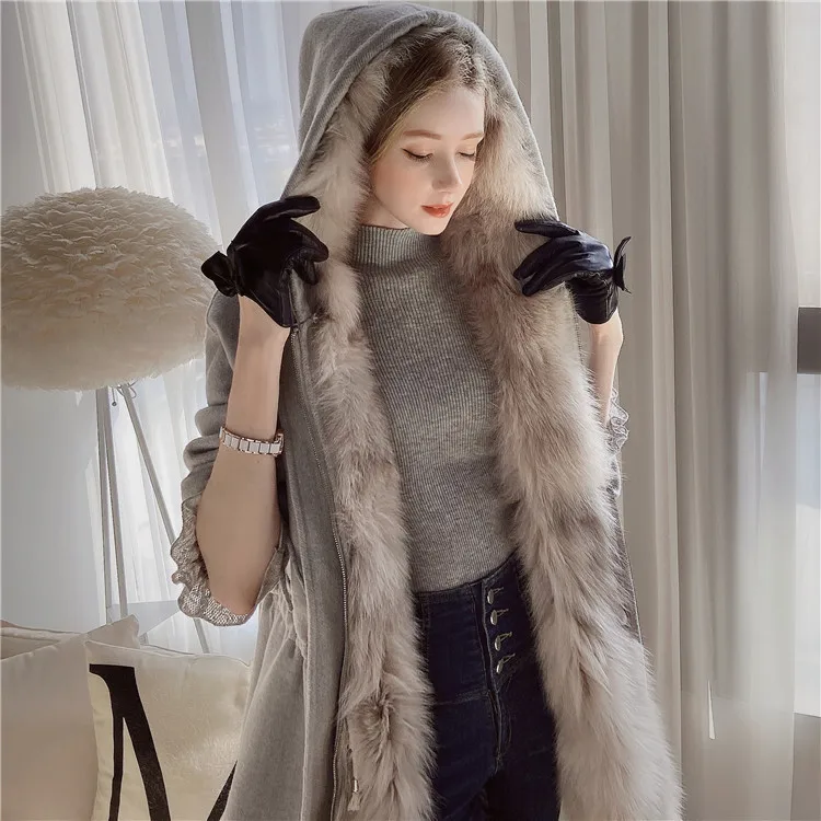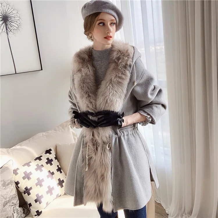 Пальто женское Шерстяное с капюшоном Dabuwawa, зимнее теплое пальто из натурального Лисьего меха, DT1DLN017